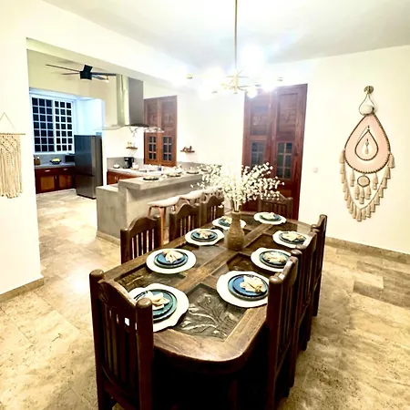 Los servicios de cocina de la villa incluyen una cafetera/tetera, una nevera y un horno, proporcionados en una zona de comedor. Los huéspedes pueden disfrutar de la cena en el restaurante Blucacao, situado a 450 metros. Se tarda 5 minutos en coche desde esta propiedad para llegar al aeropuerto Nacional de Playa del Carmen.